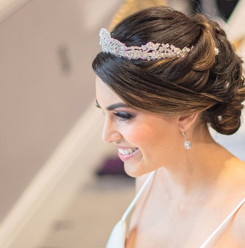 The tiara completes the overall look of any bride’s wedding hairstyle. Every element of a bride’s bridal look is as important as her wedding outfit and wedding jewelry, including her bridal hairstyle, which must match her taste and personality.